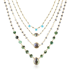 Layer 3: Libi II - Dendrite Opal with Labradorite Round Connector (16" plus 2" extender)
