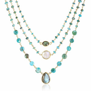 Layer 1: Lori - Pyrite 2MM with Trio Turquoise Pendant Drop(14" plus 2" extender)
