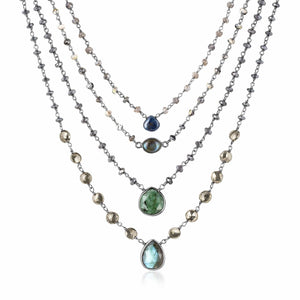 Layer 1: Lori - Mystic Black Spinel 2MM with Blue Topaz pendant drop (14" plus 2" extender)